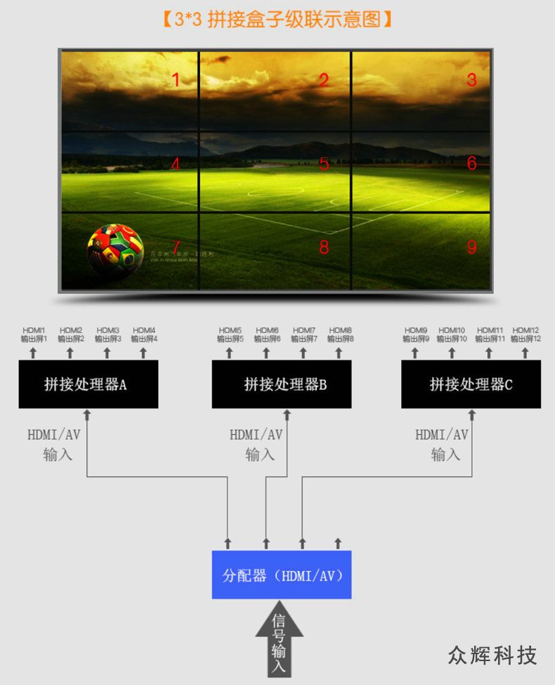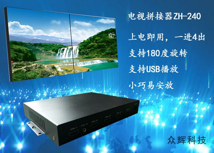 4個(gè)HDMI高清接口USB循環(huán)播放 眾輝4電視拼接盒ZH-240