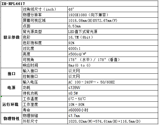 ZH-NPH4617 三星46寸1.7mm拼縫